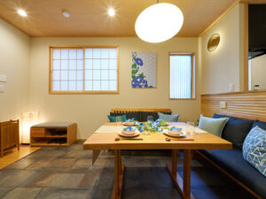 和風で落ち着きでありつつも、「あさがお」の華やかさを感じられる空間が宿泊ゲストをお迎えします。