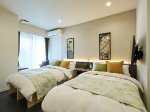 長期滞在やグループ旅行に最適な客室構成で、全室にランドリーとキッチンを完備しました。2DKタイプ(5室)は、グループやファミリーに最適な本格的な調理が可能なフルキッチンを備え、家族や友人と囲む食卓を演出します。また、ツインタイプ(2~5階 8室)にも利便性の高いミニキッチンを完備し、軽食や朝食も自室で自由自在です。