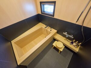 最大の自慢は、日本古来の高級木材「ヒバ」を使用したお風呂です。扉を開けた瞬間に広がる芳醇な木の香りが、長期旅行の疲れを優しく癒やします。インバウンドゲストに、日本の伝統的な癒やしの文化を「プライベートな空間」で体験いただけます。
